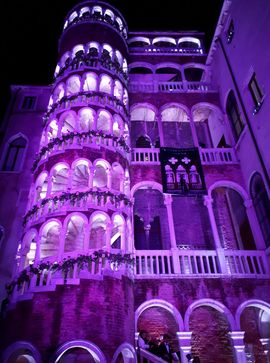 Scala Contarini del Bovolo illuminata in occasione della Giornata del Fiocchetto Lilla