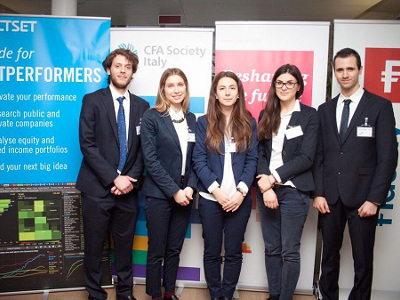 Ca’ Foscari si conferma una delle università più solide e competitive del Cfa Reasearch Challenge, competizione mondiale di finanza organizzata dal Cfa Institute che mette in palio il titolo di miglior team di futuri analisti finanziari. Il Team cafoscarino che ha partecipato alla tappa italiana di Milano era composto sia da studenti di Economia e finanza (Dipartimento di Economia) che da studenti di Amministrazione, finanza e controllo (Dipartimento di Management).