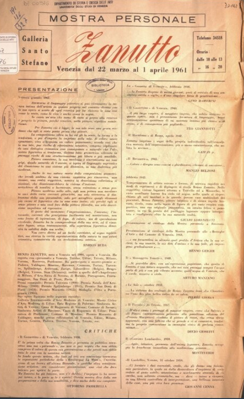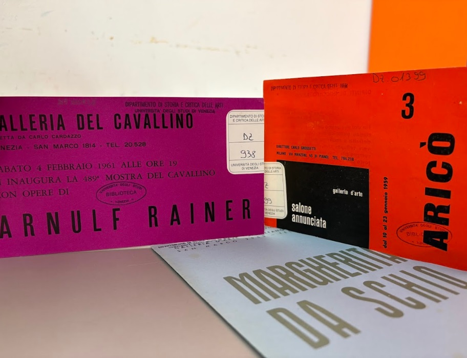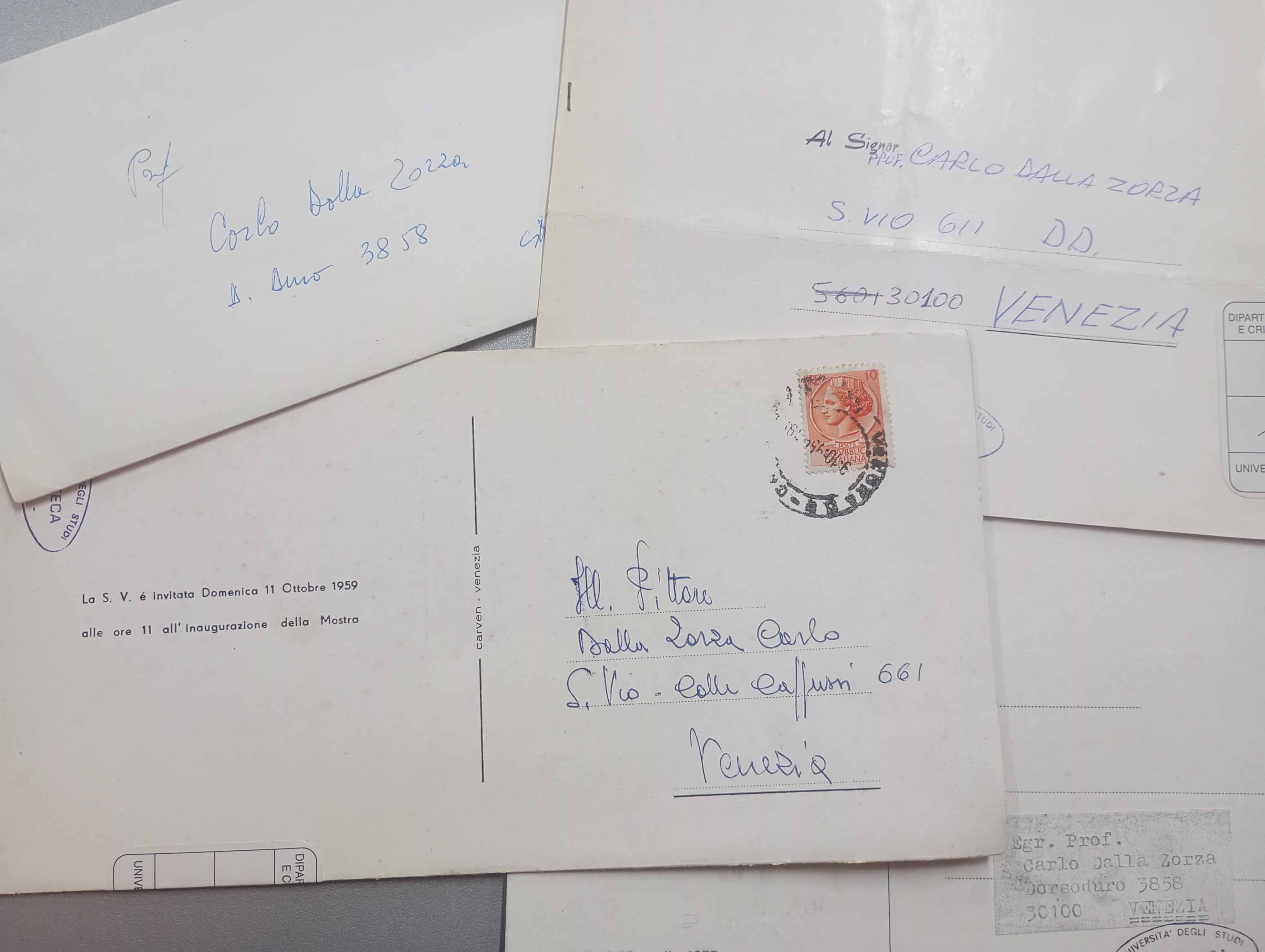 Fa parte integrante della raccolta un consistente nucleo di biglietti d’ invito a vernissage di ambito locale e nazionale, indice della centralità di Dalla Zorza sulla scena artistica veneziana tra gli anni ’50 e ’70.