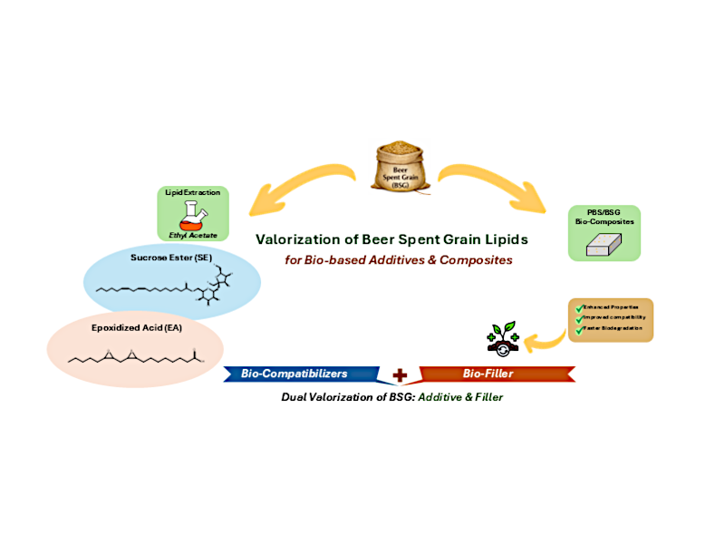 Objectives and methodology: these bio-additives are integrated into Poly(butylene succinate) (PBS) to create advanced biocomposites. Technical results demonstrate that a 6 wt% concentration of these additives significantly enhances interfacial adhesion, thermal stability, and mechanical strength. Furthermore, specific chemical modifications impart pronounced hydrophobicity, ideal for moisture-sensitive industrial uses.