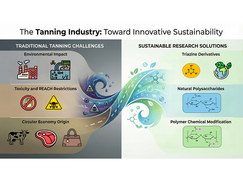 The leather industry is an example of a circular economy: an unwanted putrescible byproduct of the meat industry can be transformed into a high added-value, stable product. To do so, hide collagen fibers need to be chemically stabilized by a tanning agent, but this process employs a huge amount of water and chemicals (some of them hazardous) and generates a considerable quantity of solid, liquid sludge and volatile emissions. Most of the leather produced today is tanned with chromium (III) salts, and various alternatives to chrome tanning, such as aldehydes and phenol-based synthetic tannins, are suffering from REACH restrictions due to their toxicity. Thus, the scientific research is focused on the development of innovative and more sustainable tanning agents. Triazine derivatives are examples of alternative and sustainable tanning agents being extensively explored by the research group since 2014. The use of polysaccharides such as sodium alginate or cellulose derivatives is known in the literature, but the study for their industrial application is still a topic of great relevance today. In fact, the research group aims to expand it by chemically modifying these polymers to enhance their performance for further applications and tests.