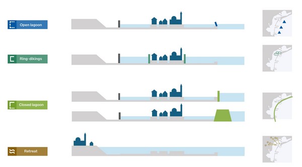 Lo studio considera quattro possibili strategie per salvare Venezia dall’innalzamento del livello del mare nei prossimi 300 anni: barriere mobili, dighe ad anello, chiusura della laguna, e rilocalizzazione della città. Fatta salva l’urgenza di interventi tempestivi che proteggano Venezia, patrimonio mondiale dell’UNESCO, tali strategie suggeriscono anche in che modo i risultati ottenuti dovrebbero servire a indirizzare meglio la pianificazione a lungo termine di protezione della città e delle sue fragilità.