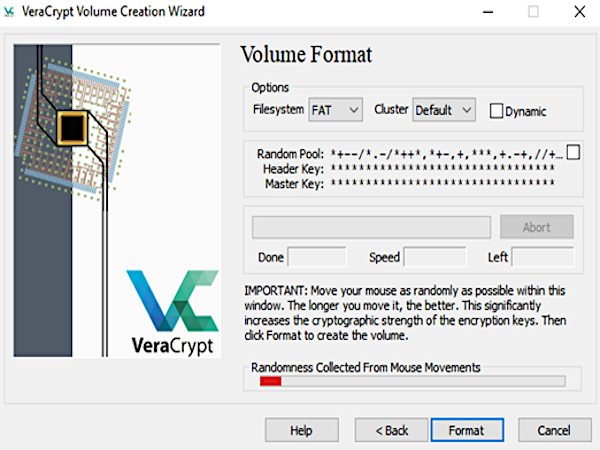Durante la permanenza in questa finestra, muovi il mouse in modo casuale: il programma raccoglie questi dati e con essi crea la chiave di criptazione. Continua finché la barra rossa diventa verde per una maggiore sicurezza.