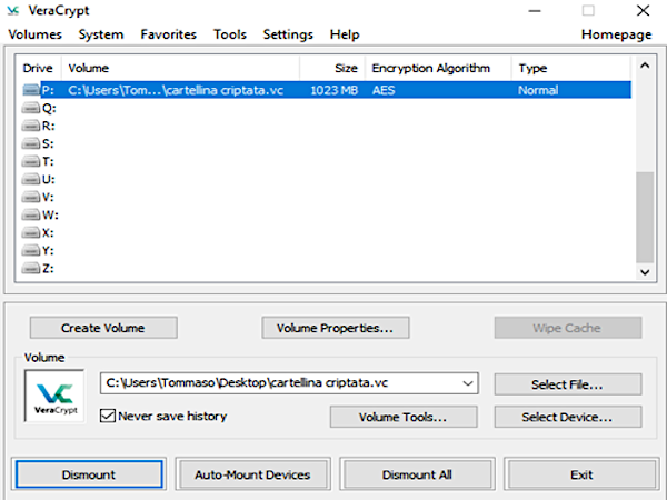 Si tratta di uno strumento di crittografia completamente gratuito che funziona su Windows, MacOSX e Linux. VeraCrypt può essere installato sul computer, ma esiste anche una sua versione 'portable' che può essere salvata ed eseguita anche direttamente dalla chiavetta USB.